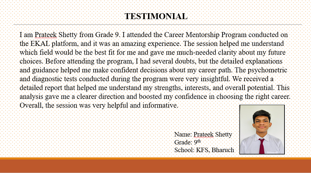 I am very happy with my decision to enroll my son, Aayush Soni, at Kalorex Future School, Bharuch. Over time, I have seen remarkable improvement in his studies and overall confidence. The school provides a nurturing and supportive environment that truly focuses on a child’s holistic growth. I sincerely thank the Principal Ma’am, dedicated teachers, and the entire staff for their consistent efforts, encouragement, and guidance in shaping my child’s learning journey.