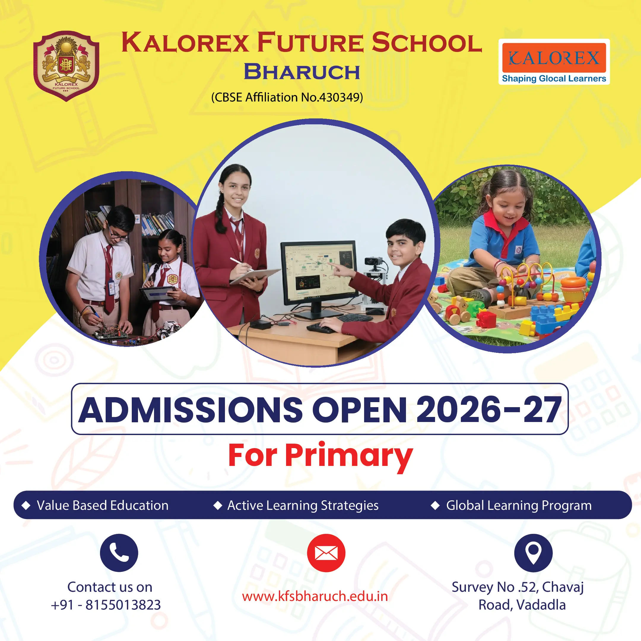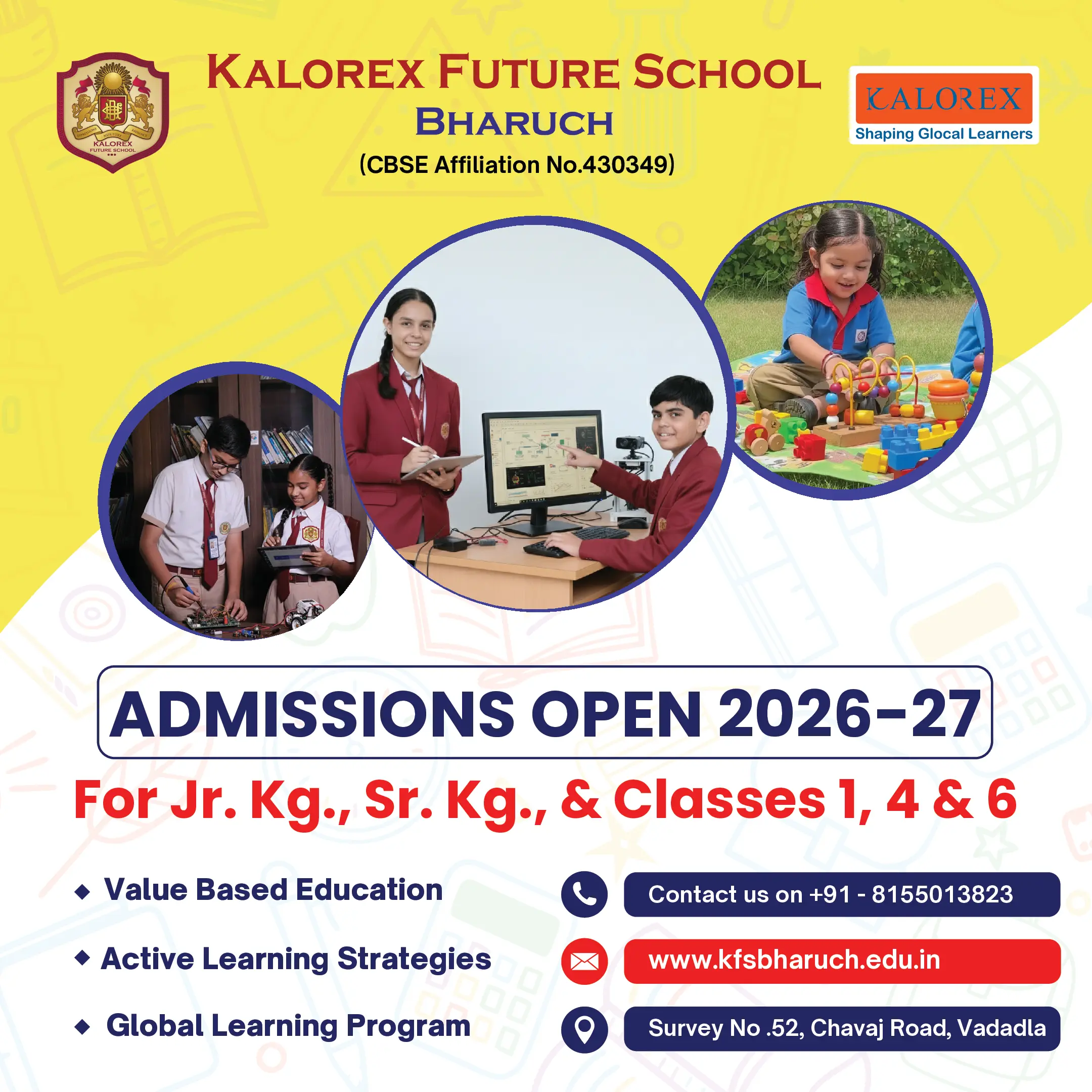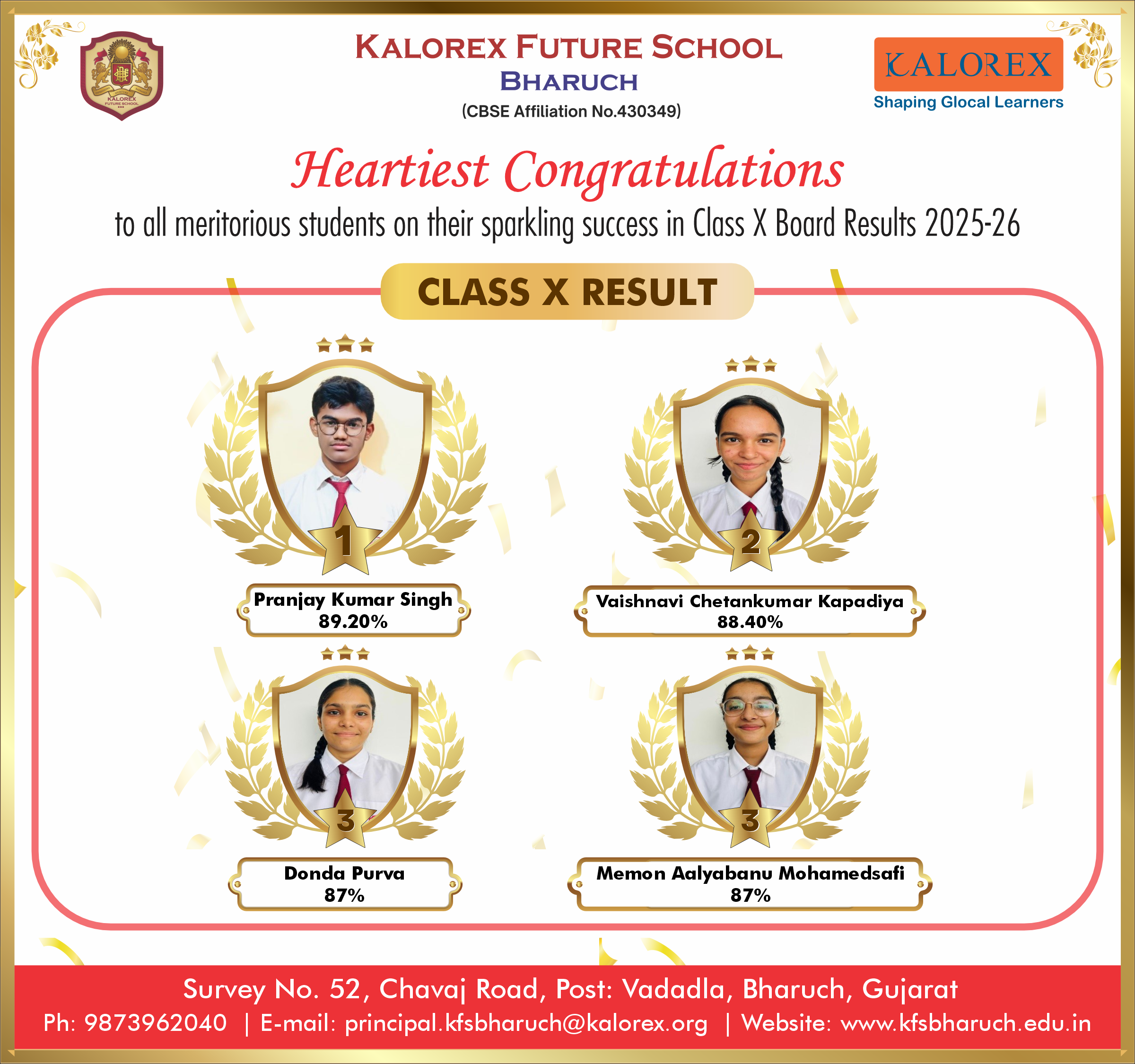 At Kalorex Future School – Bharuch, we not only nurture the Education needs of children but also inculcate in them the best of Glocal Practice – combining the elements of Global attributes including 21st century skills, Life skills, people-Communication skills, Local values and Traditions to set us apart as the one of the best CBSE schools in Bharuch.